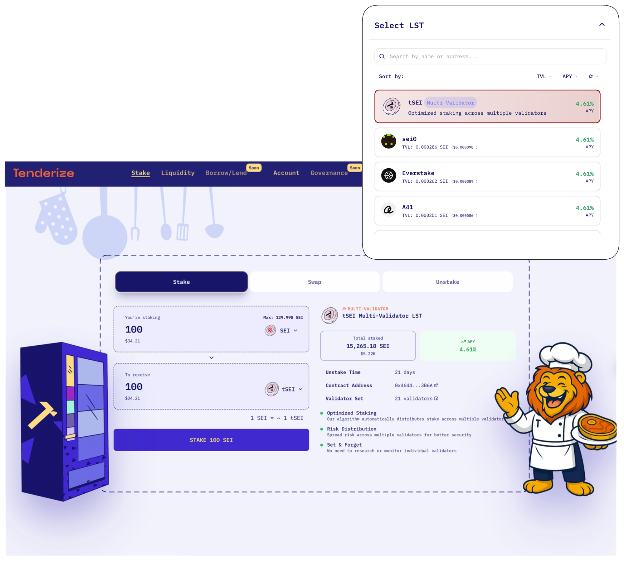 Tenderize is the first protocol to bring the holy trinity of staking to the Sei network under one roof: