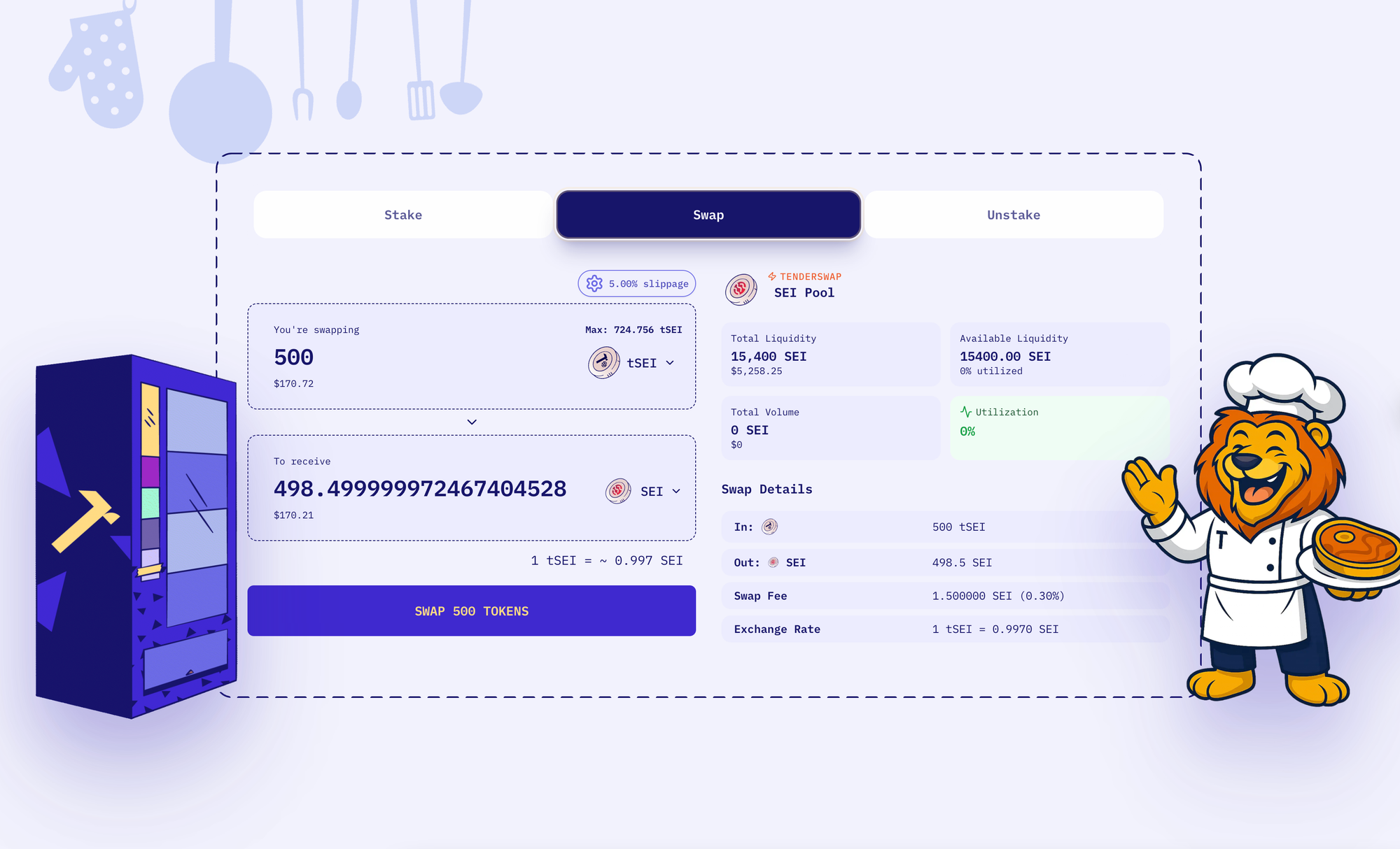 - TenderSwap: instantly unstake your staked SEI (tSEI or liquid wrappers) for a small fee based on available liquidity