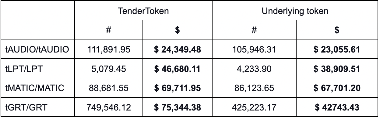 Liquidity Pools - The balances of the liquidity pools for Tenderize’s TenderTokens