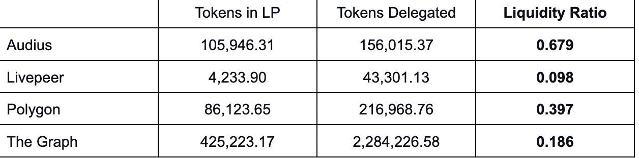 Liquidity Ratio - The ratio of underlying tokens in the liquidity pool versus the amount delegated