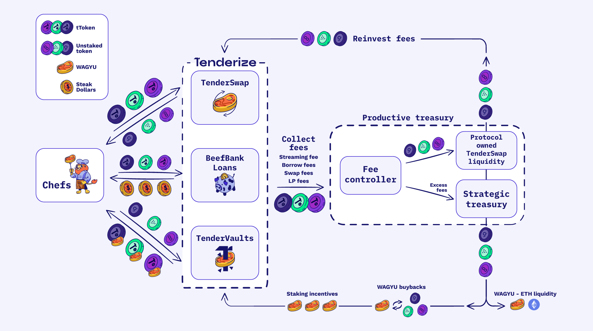 Once TenderSwap POL is sufficient, excess revenue buys back WAGYU from the open market. This is distributed back to users by offering the token as an incentive for users to provide capital where growth is needed most. Using revenue to fund incentives without inflating the total supply is key to constantly attracting new capital without diminishing the value of WAGYU.